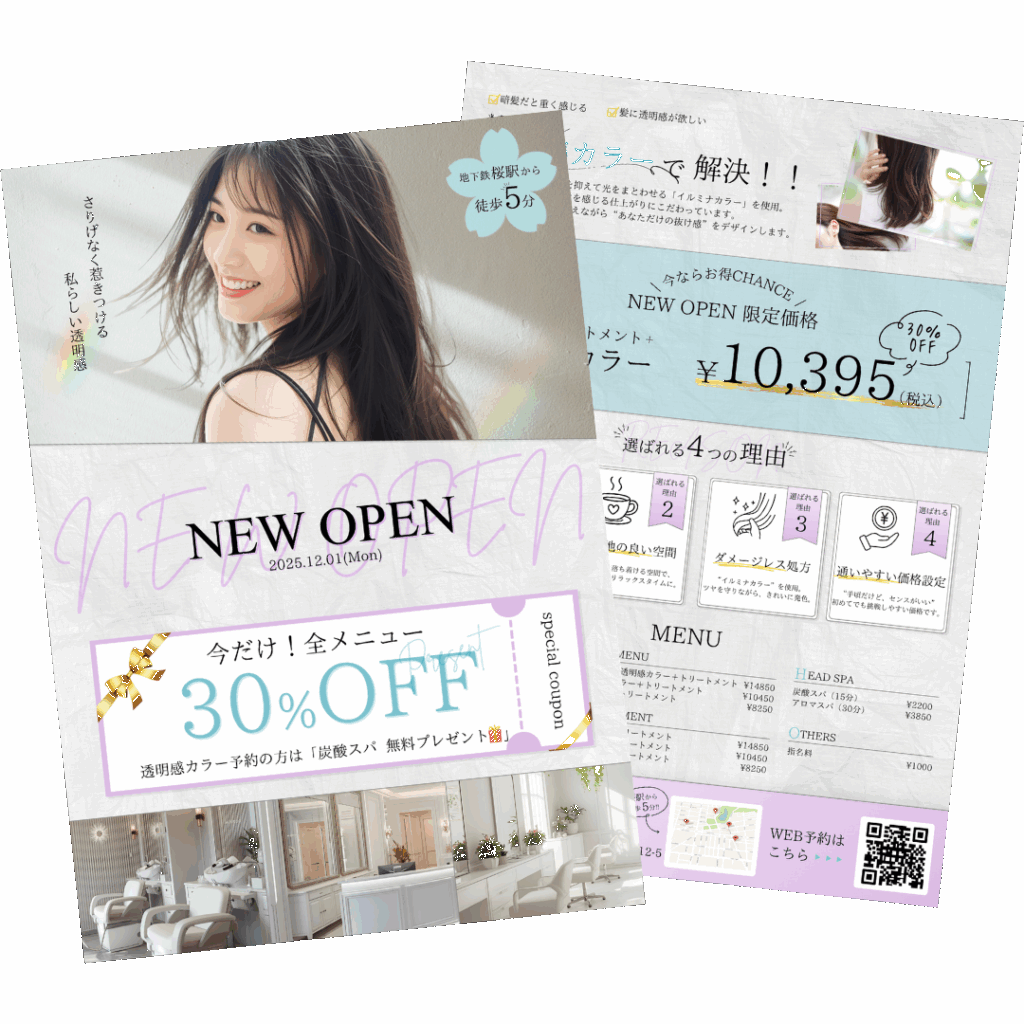 30%OFFの特典を大きく配置し、来店のきっかけに繋がるように意識しました。